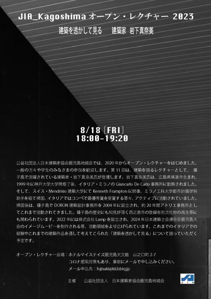 HOME › NEWS&EVENTS › 鹿児島地域会 › オープンレクチャーかごしま開催のご案内
