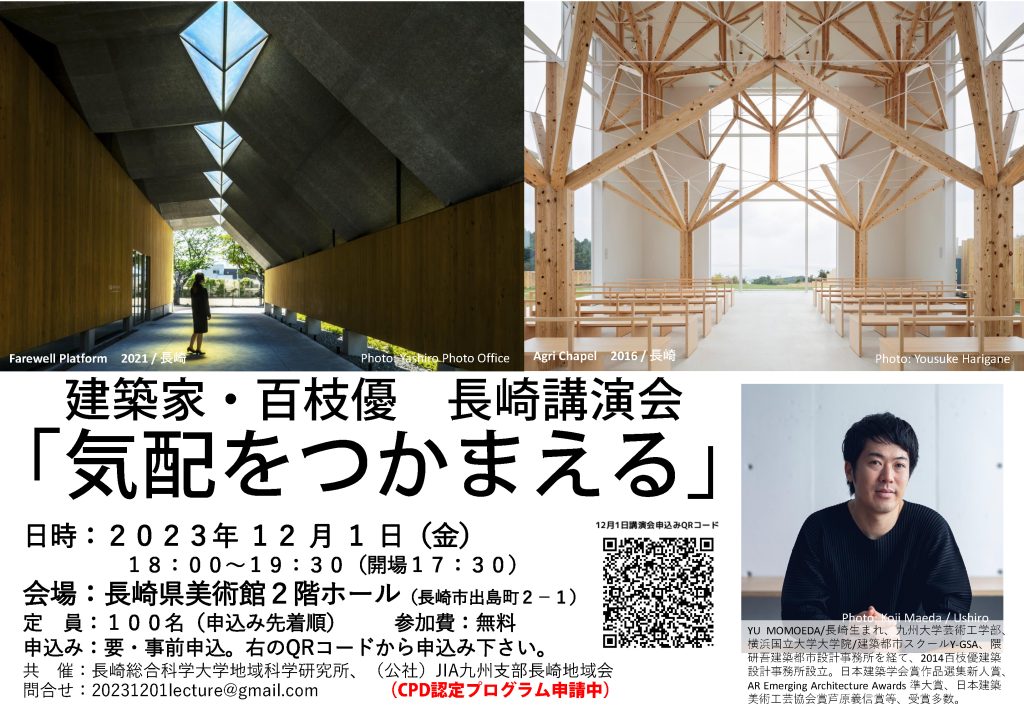 HOME › NEWS&EVENTS › 長崎地域会 › 【講演会開催】建築家・百枝優「気配をつかまえる」講演会開催のお知らせ(12月1日)