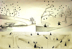 近代的な田園環境の提案と、淡い色での図面表現が評価されたが、田圃の形が絵になってしまったという意見もあった。