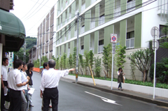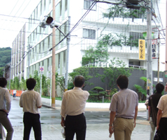 2010年度第1回の会員作品見学会を実施しました。 名称:西本願寺鹿児島別院 役宅・納骨堂 日時:2010年5月28日(金) 場所:鹿児島県鹿児島市 設計・監理:(株) 武田建築事務所 施工:株式会社 鴻池組 参加者は会員4名、一般6名の10名でした。 概要は、役宅:RC造5階建て、納骨堂:RC造地下1階地上5階建。 西本願寺の施設の一部として増築された建物で、商業地域の中にあり、緑のカーテンをバルコニーに計画し、近隣に緑の環境を提供している建物です。