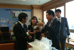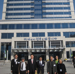 10月31日より11月4日まで開催された韓国、全羅北道の建築文化祭へ参加しました。会員のパネルの展示と、開会式へ参加し、全羅北道の副知事、建設局長、都市計画課の部長など、行政の方々ともお会いし鹿児島の記念品や、観光ポスターをお渡しできました。 今回の参加は、全羅北道の建築士会(KIRA)の会長より、鹿児島の建築士の団体と国際交流の要請があり実現しました。隔年の交流とし、毎年お互いの建築展へのパネルの展示を行います。今回も、11月18日よりJIA鹿児島会の建築展へ、KIRAの会員の建築作品パネルを展示します。 建築文化祭は、全羅北道の建築全般の活動を紹介し、学生の作品への表彰や、建築家の作品の表彰、研究発表などが行われるものです。全羅北道の庁舎のホールや展示場で催され、開会式の挨拶は副知事がされました。これからの建築へ、経済活動だけではない活動への期待を話されていました。