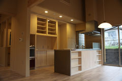 テーマは、友人が集い、語らいながら料理を楽しむ、「和」を基調とした色彩を持つ介護対応型住まいです。自然の恵みである、風・光・緑・土を各室から享受できる間取りであり、また、車椅子での移動に配慮し、動線を短く、通路幅も広くしました。