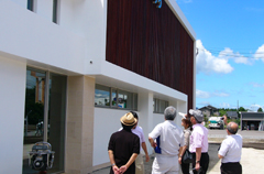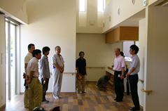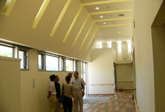 見学作品の外観 アプローチで外部の説明 受付ホールにて内部の説明 待合ホールの吹き抜け部分