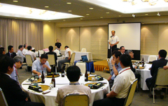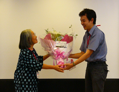 川畠会員へ花束の贈呈 地域交流会と前期のJIA鹿児島会の活動報告