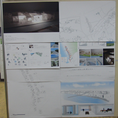 水辺の施設が道路面より突出しないように計画されており、景観のの魅力を引き出せるとの意見が多かった。模型が丁寧にできているとの評価の 反面、同じ様な用途のスペースが続くのはいかがとの意見もあった。
