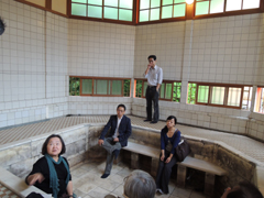今年は佐賀での地域交流会となりました。6月1日2日の2日間、佐賀の町並みや建築を見学し、九州支部の会員との交流会を行いました。鹿児島地域会からは4名参加しました。各地域会から見学会と交流会に24名の会員が参加しました。 1日は、鹿児島から出発し途中、福岡県筑後市の九州芸文館で食事と見学を。 翌日は、武雄市の図書館の見学、武雄温泉新館・楼門(辰野金吾設計)の見学をしました。楼門は修復中で、干支を確認することはできませんでしたが、新館の浴場の見学や座敷を見ることができました。武雄市図書館はカフェもあり運営が民間ということもあるのか、多くの利用者がありました。 今回は、佐賀地域会の方々が資料の準備をされ、伝建地区等の案内をしてくださいました。 |