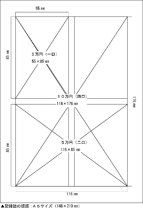 ■御協賛頂きました口数によって、記録誌掲載の際の図サイズが異なります。お手数ですが下図のサイズに従い画像データを送付頂きますようお願い申し上げます。