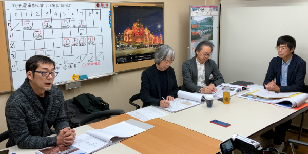 審査委員の塩塚隆生氏、田中俊彰氏、柳瀬真澄氏に登壇いただき、JIA九州支部長 松山将勝をモデレーターとして、「九州の建築の未来]について、議論。