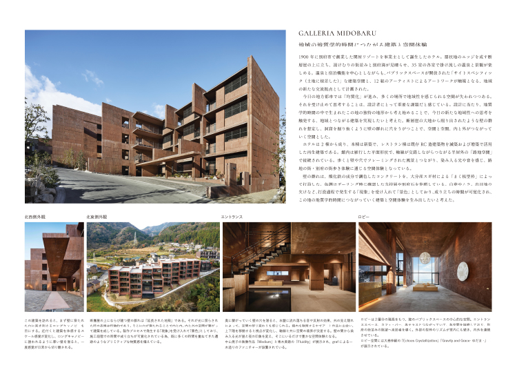 - ③審査委員と関係の深い(協同設計者、または同一組織等に所属する)方は、応募出来ません。作品応募作品は、応募者により設計された、2013 年 1 月 1 日から 2023 年 8 月 31 日の間に完成した建築作品(新築・改修・増改築・建築リノベーション・内装デザイン・ランドスケープ)とします。