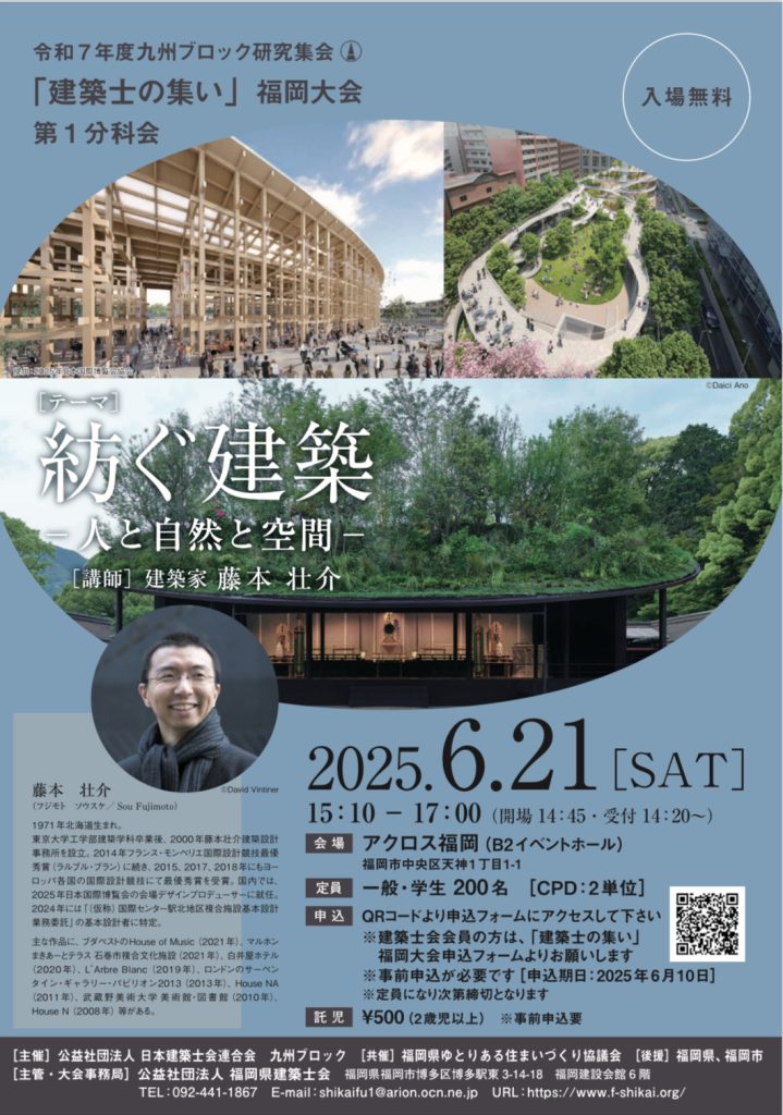 最新のお知らせ HOME › NEWS&EVENTS 各地域会の記事を表示できます 九州支部 北福岡地域会 福岡地域会 佐賀地域会 長崎地域会 大分地域会 熊本地域会 宮崎地域会 鹿児島地域会 全ての記事 全ての記事 2025.12.09 九州支部 【国交省】BIM図面審査制度説明会及び制度説明動画のご案内 MORE 2025.12.02 九州支部 2025年度子ども教育支援建築会議 全体会議・シンポジウム 子ども教育支援のための建築とまちのプラットフォーム 12/13 MORE 2025.12.02 九州支部 中規模ビル木造標準モデルワークショップのご案内 MORE 2025.12.02 九州支部 第17回建築コンクールテーマ「耕す建築」開催のお知らせ MORE 2025.11.26 九州支部 Iki Culture Terminal FES2025 MORE 2025.11.22 長崎 日本二十六聖人記念館 聖フィリッポ教会 DOCOMOMO Japan 選定イベント MORE 2025.11.19 熊本 第35回 クリスマス ライティング パーティ出展のお誘い MORE 2025.11.18 長崎 JIA長崎地域会12月講演会 末光弘和氏「建築で循環をデザインする」12/16 MORE 2025.11.14 福岡 丹下健三氏設計の旧香川県立体育館 クラウドファンディングのお知らせ MORE 2025.11.14 福岡 JIA福岡地域会 11月公開例会「メタボリズムからミニマリズムへ」のご案内 11/27 MORE 2025.11.14 九州支部 JIA環境会議/中国支部「2050カーボンニュートラル連続セミナー」のご案内 MORE 2025.11.12 九州支部 福岡市景観セレクションMARBLE FUKUOKA MORE 2025.11.12 九州支部 第31回福岡市都市景観賞 MORE 2025.11.07 九州支部 建築家のあかりコンペ2025の公開2次審査会 MORE 2025.11.07 九州支部 3階建木造建築物講習会の開催 MORE 2025.11.05 九州支部 『建築工事監理指針令和7年版(上巻、下巻)』 『電気設備工事監理指針令和7年版』 『機械設備工事監理指針令和7年版』 ~ 講習会のご案内~ MORE 2025.10.29 九州支部 建築積算実技講習会、建築積算士2次試験について MORE 2025.10.29 熊本 【熊本県建築課】アートポリス モク活2025「くまもとの木造建築受賞記念シンポジウム」 の開催について MORE 2025.10.24 九州支部 「JIAゴールデンキューブ賞2023-2026」開催のお知らせ及び事業協賛のお願い MORE 2025.10.23 九州支部 【締切10月31日まで】第3回九州建築新人賞募集のご案内 MORE 1 / 3412345>