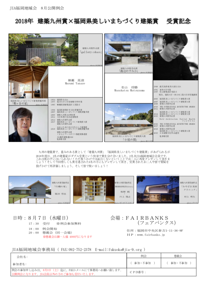2019年JIA福岡地域会8月公開例会が開催されます。
