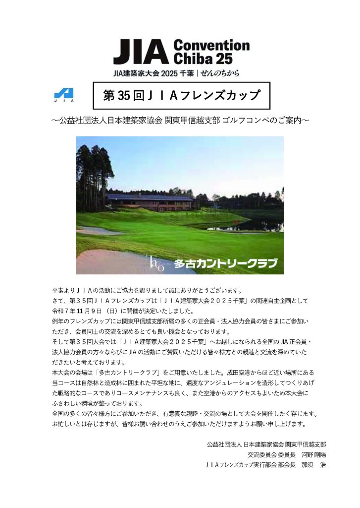 さて、第35回JIAフレンズカップにつきまして「JIA建築家大会2025千葉」の関連自主企画として