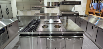 業務用厨房機器設計製造施工販売及び関連機器各種、システムキッチン設計製造施工及び販売、ステンレスタンク類設計製造施工販売